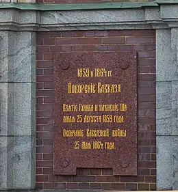 ![]() Беседка и памятная доска на месте сдачи Шамиля генералу Барятинскому. |