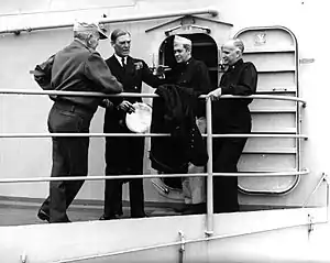 ![]() Адмирал Филип Виан (2-й слева) на борту линкора «Миссури», 1945 год | |