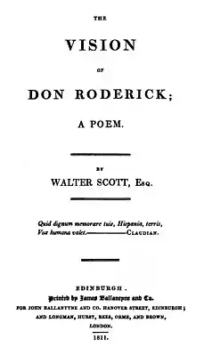 «Виде́ние до́на Ро́дерика» (англ. The Vision of Don Roderick) — поэма Вальтера Скотта, написанная в честь успехов герцога Веллингтона в Пиренейской кампании. Все доходы должны были быть переданы пострадавшим в войне португальцам.[1] «Видение» — политическая поэма, переносящая в сон вестготского короля Испании Родериха картины будущих событий истории. Сюжет основан на одной из любимых детских книг Скотта, «Гражданских войнах в Гранаде» (Guerras civiles de Granada) Хинеса Переса де Ита. Он начал работу над поэмой весной 1811 года, но работа над ней оказалась трудной и шла медленно. После завершения работы над ней, Скотт небрежно называл поэму «патриотической марионеткой»[2] и, в целом, был низкого мнения о ней.[1]