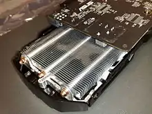 Объём памяти большего количества современных видеокарт варьируется от 256 МБ (например, AMD Radeon HD 4350)[36] до 48 ГБ (например, NVIDIA Quadro RTX 8000)[37]. Поскольку доступ к видеопамяти GPU и другими электронным компонентами должен обеспечивать желаемую высокую производительность всей графической подсистемы в целом, используются специализированные высокоскоростные типы памяти, такие, как SGRAM, двухпортовые (англ. dual-port) VRAM, WRAM, другие. Приблизительно с 2003 года видеопамять, как правило, базировалась на основе DDR технологии памяти SDRAM, с удвоенной эффективной частотой (передача данных синхронизируется не только по нарастающему фронту тактового сигнала, но и ниспадающему). И в дальнейшем DDR2, GDDR3, GDDR4, GDDR5 и на момент 2016 года[38] GDDR5X. С выходом серии высокопроизводительных видеокарт AMD Fury совместно с уже устоявшейся на рынке памятью GDDR начала использоваться память нового типа HBM, предлагая значительно большую пропускную способность и упрощение самой платы видеокарты, за счёт отсутствия необходимости разводки и распайки чипов памяти. Пиковая скорость передачи данных (пропускная способность) памяти современных видеокарт достигает 480 ГБ/с для типа памяти GDDR5X (например, у NVIDIA TITAN X Pascal[39]) и 672 ГБ/с для типа памяти GDDR6 (например, у TITAN RTX[40]).