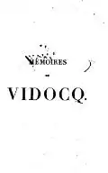 - 1828 — Записки Видока, начальника Парижской тайной полиции (фр. Mémoires de Vidocq, chef de la police de Sûreté, jusqu'en 1827) (4 тома, 1828—1829). Cкан: 1 2 3 4