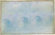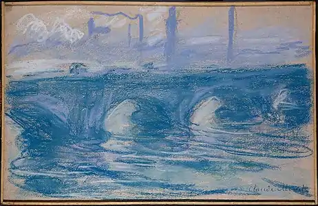 | Мост Ватерлоо, фр. Waterloo Bridge. 31 × 49 см. Справа внизу подпись: Claude Monet. | Частная коллекция (Кристис, 9 апреля 2002 года[9])[6]. |
