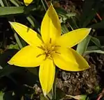 | Tulipa urumiensis Stapf 1932 | Тюльпан поздний | Северо-запад Ирана, Киргизия, Казахстан. Голотип — потомки луковиц, присланных из Урмии. | Синоним — Tulipa tarda Stapf 1933 (в систематике Зонневельда, напротив, видом признаётся Tulipa tarda, а его синонимом — Tulipa urumiensis). Две формы отличаются только окраской цветка: у Tulipa urumiensis он чисто жёлтый, у Tulipa tarda жёлтый с белым. К этому же виду относятся культивируемый в Европе «Tulipa dasystemon»[106]. | ||||