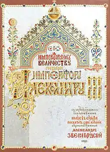 В 1892 году книга была выпущена на русском, французском и немецком языках по 200 нумерованных экземпляров на каждом[11]. Перевод сочинения Кондакова на немецкий язык выполнил в Санкт-Петербурге фон Кретшманн, а на французский в Париже Ф. Травинский[12]. Книги на русском языке печатала типография Михаила Стасюлевича в Петербурге, а издания на французском и немецком были напечатаны во Франкфурте-на-Майне в типографии Августа Остеррита[13]. Звенигородский посвятил издание императору Александру III и поместил в книгу авантитул, оформленный Ропетом в стиле праздничного адреса самодержцу.