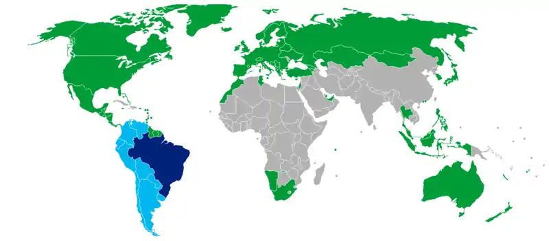Бразильское правительство решило в одностороннем порядке отказаться от визовых требований для посетителей для граждан следующих стран, с 17 июня 2019[84]: