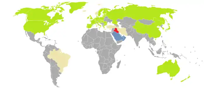 Визу по прибытии в Ирак могут получить граждане следующих стран[2][3]:
