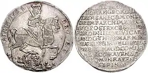 По подобию викариатных талеров 1612 года в 1658 году при Иоганне-Георге II выпустили талер наследственных земель.
