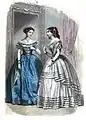 Платья этого периода, отличающиеся тесно прилегающим лифом и покатой формой плеч, по-прежнему придерживаются романтизма. Как отмечал французский критик Теофиль Готье: «Подчеркивая только бюст и голову, которые являются важнейшими частями тела, теперь, когда нагота несовременна, кринолин указывает на ложную стыдливость своей эпохи, которая волновалась при виде высунутой ноги или тесно облегающей перчатки»[1].