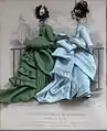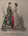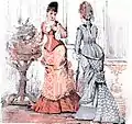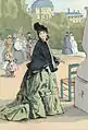В начале 1870-х в силуэте появились сильные акценты на задней части платья. В Англии, как и во Франции, преобладает общая тенденция к стройным вытянутым силуэтам. Ширина юбки, соответственно, значительно уменьшилась, в то время как сзади обилие ткани и декоративных деталей собрано в складки и драпировки, а у выходных платьев имеется шлейф, наподобие оных у придворных туалетов. Но кроме турнюра носят и юбки, называемые «полонезы», сзади высоко присборенные, — такие, какими их знало рококо.