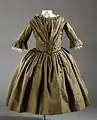 - Платье для поездок в экипаже (Carriage dress) или платье для путешествий — эти платья отличались практичностью и удобством по сравнению со всеми остальными вариантами. Такой вариант платья позволял женщине удобно садиться в экипаж и выходить из него и не загрязнить во время путешествий. Расцветки дорожного платья были сдержанными, ткани — мягкими. Дорожные платья были короче обычных все по тем же причинам. Ко многим дорожным платьям прилагались накидки, пелерины или пальто.