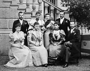 В России брак Людвига, племянника покойной императрицы Марии Александровны, не одобряли. Людвиг считался чуть ли не изменником, выбрав Великобританию — исторического противника России — в качестве дома и места службы[37]. Подобно тому, как Романовы отнеслись к этому браку, королева Виктория была крайне недовольна выбором жениха Эллы. Им оказался великий князь Сергей Александрович, брат императора Александра III. Королева писала своей старшей гессенской внучке: «Никому не советую выбирать русского»[38]. В итоге бабушка уступила, и свадьба была назначена на лето 1884 года[39]. Вся гессенская родня впервые отправилась в Санкт-Петербург. Виктория в письмах к бабушке сообщала подробности свадьбы сестры, описывала роскошь императорских резиденций и архитектуру улиц столицы[40].