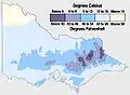 Самой холодной частью Виктории являются Викторианские Альпы на северо-востоке. Альпы являются частью горной системы Большого Водораздельного хребта, протянувшейся через всю территорию штата с востока на запад. Средние температуры зимой менее 9 °C и ниже нуля в наиболее высоких местах. Минимальная температура в штате минус 17,7 °C была зафиксирована 13 июня 1965 года в Оумиоу и 3 июля 1970 года в Фолс-Крик[5].