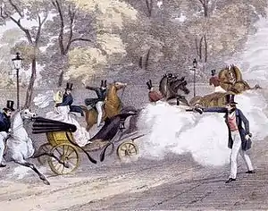 В 1839 году Мельбурн ушёл в отставку после того, как радикалы и тори (которых Виктория не любила) проголосовали против билля о приостановлении действия конституции Ямайки. Билль лишал политической власти хозяев плантаций, которые сопротивлялись мерам, связанным с отменой рабства[57]. Королева назначила тори Роберта Пиля новым премьер-министром. В то время было обычно для премьер-министра назначать членов королевского двора, которые часто были его политическими союзниками и их супругами. Многие из фрейлин королевы были жёнами вигов, и Пиль собирался заменить их жёнами тори. Виктория, по совету Мельбурна, возражала против этих действий. Пиль отказался действовать с ограничениями, налагаемыми королевой, и, следовательно, подал в отставку, позволив Мельбурну вернуться на свою должность[58].