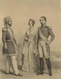 Наполеон III, ближайший союзник Великобритании в Крымской войне[100], посетил Лондон в апреле 1855 года, и 17—28 августа того же года Виктория и Альберт нанесли ответный визит[103]. Наполеон III встретил чету в Дюнкерке и сопровождал до Парижа. Они посетили всемирную выставку (преемницу Великой выставки 1851 года — детища Альберта) и гробницу Наполеона I в Доме инвалидов (куда прах был перенесён только в 1840 году), а также стали почётными гостями на балу в Версале[104].