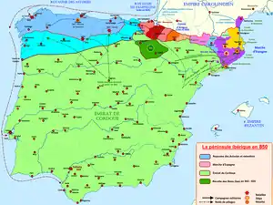 - В Испанской марке против правителя Западно-Франкского королевства Карла II Лысого поднял мятеж Гильом Септиманский, а в Васконии — Санш II Санше[11].
