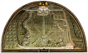 ![]() Дж. Утенс. Вилла Пратолино. Ведута конца XVI в. Фрагмент. | |