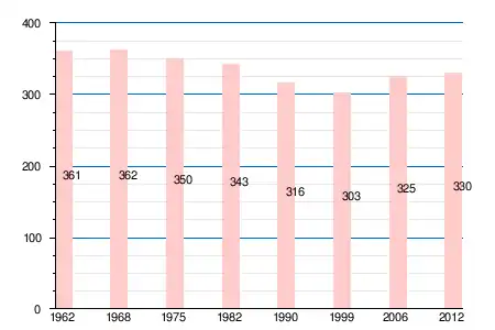 | 361 | 362 | 350 | 343 | 316 | 303 | 325 | 328 | 335 | 334 | 330 |