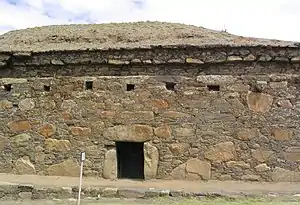 Главное здание построено из тяжёлых блоков-мегалитов, а промежуточные пространства в наружных стенах заполнены мелкими шиферными пластинками. На наружные стены опирается двускатная крыша из крупных гладких каменных плит, каждая из которых имеет длину до 1 метра. Окна отсутствуют — имеются только прорезы для доступа воздуха.