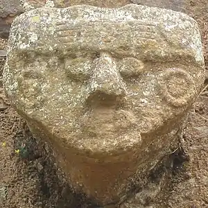 Одно из изображений представляет собой голову, лоб которой закрыт двумя руками. Имеет ли данное изображение связь с храмами культуры Котош в Уануко, где также встречается символ скрещенных рук, пока неясно.