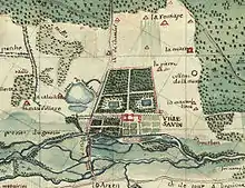 Название комплекса восходит ко временам Древнего Рима. В I веке здесь на территории римской провинции Галлия на месте нынешнего замка существовала Вилла Савини (Villa Savini), которая располагалась на важной пути Виа Адриана. Эта дорога шла из Шартра в сторону Британии. Однако после ухода римлян вилла была заброшена.