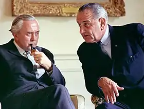 Джеймс Гарольд Вильсон (Уилсон[5]), барон Вильсон из Риво (англ. James Harold Wilson, Baron Wilson of Rievaulx; 11 марта 1916 года, Хаддерсфилд, Уэст-Йоркшир, — 24 мая 1995 года, Лондон) — британский политик-лейборист, лидер партии с 1963 года, премьер-министр Великобритании (1964—1970 и 1974—1976 годы). Под его руководством лейбористы выигрывали всеобщие выборы 4 раза (в 1964, 1966 и дважды в 1974 году). Однако в 1976 году Вильсон ушёл в отставку, не сумев исправить ухудшающееся положение британской экономики. Последний на сегодняшний день премьер-министр Великобритании, который сумел вновь стать главой правительства после отставки.