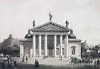 Среди первых эстампов была литография по картине Яна Дамеля «Отступление французской армии по Ратушной площади в 1812 году» (1846), выполненная Виктором Адамом (стаффаж) и Луи Бишебуа (архитектурный пейзаж). В альбом вошли панорамные лирико-романтические пейзажи «Вильно с северо-запада» и «Костёл миссионеров» по рисунку М. Э. Андриолли, «Калвария» и «Пригород Снипишки» И. Ф. Хруцкого, изображения интерьеров — Вяркяйского дворца и бернардинского костёла по рисункам Садовникова, костёла тринитариев на Антоколе по акварели Садовникова (литография И. Деруа, 1847).