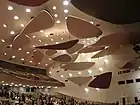 Интерьер здания Aula Magna Центрального университета Венесуэлы - потолок с «Акустическими облаками» работы Александра Колдера