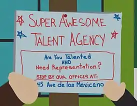 ![]() Картман вешает рекламу своего Агентства. | |