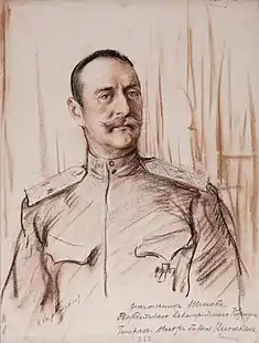 За то, что, в бытность временно командующим отдельной гвардейской кавалерийской бригадой, самоотверженно руководя под неприятельским огнем ее действиями в бою 7 сентября 1915 года в районе д. д. Слобудка-Кашиловецкая, Базар и Бураковка и лично водя в атаку спешенный эскадрон лейб-гвардии Гродненского гусарского полка на неприятельскую пехоту, решительным ударом бригады как в конном, так и в пешем строю, несмотря на упорное сопротивление противника, овладел этими деревнями и отбросил австрийцев до р. Днестра, взяв при этом пленных и трофеи.
