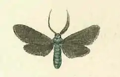 Бабочки вылупляются из куколок в мае—июне. Они имеют усики, утолщающиеся к вершине вроде булавы. Передние крылья узкие и длинные, тёмно-бронзового цвета, блестящие, задние — маленькие, овальной формы, черноватые. Крылья складываются во время покоя крышеобразно. Размах крыльев бабочки 22—25 мм.