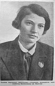 Евдоки́я Ви́кторовна Виногра́дова (Дуся Виноградова; 1914—1962) — инициатор виноградовского движения (стахановского движения многостаночниц в текстильной промышленности), в 1930-е годы — символ «нового человека». Член ВКП(б) с 1939 года.