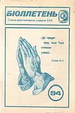 С 1971 года Совет РУ начал выпуск собственного нелегального печатного издания — «Бюллетеня Совета родственников узников ЕХБ», он выходил почти каждый месяц (всего было выпущено более 140 номеров)[56][57]. В нём публиковались обращения и письма верующих-заключённых, их биографические данные, списки подвергшихся преследованиям, подробные сводки о преследованиях в различных регионах[58]. Разделы «Бюллетеня» имели характерные названия: «Арестованы», «Осуждены», «Сводка ходатайств», «Ответы на ходатайства», «Протест на ответ», «Положение узников», «Разгоны богослужений с избиениями, штрафы, обыски и другие преследования», «Дискриминация верующих в праве на труд», «Дискриминация многодетных матерей», «Христиане в армии», «Разжигание вражды и ненависти против верующих»[53].