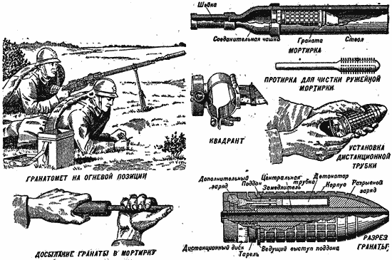 В 1915 году во Франции был принят на вооружение винтовочный гранатомёт VB для винтовки "лебель", в Великобритании разработали аналогичную мортирку, надеваемую на ствол винтовки Lee Enfield. Мортирка снаряжалась ручной гранатой (при этом вынималась чека, а предохранительная скоба удерживалась особым выступом мортирки), после чего производился выстрел холостым патроном.