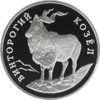 Винторогий козёл. Монета Банка России — Серия: «Красная книга», серебро, 1 рубль, 1993 год