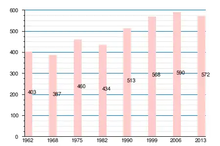 | 1962 | 1968 | 1975 | 1982 | 1990 | 1999 | 2006 | 2008 | 2011 | 2012 | 2013 |