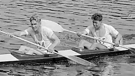 ![]() Вирес (справа) вместе со своим напарником Юрьё Хиетаненом на Олимпиаде 1952 года | |
