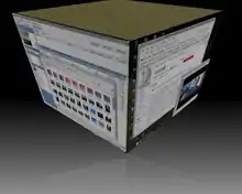 В этом примере Unix-подобная операционная система использует оконную систему X и плагин Compiz cube для украшения среды рабочего стола KDE.