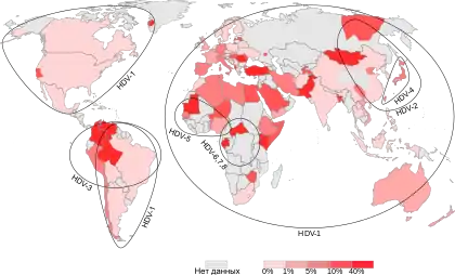 Первоначально было описано 3 генотипа этого вируса (I—III). Генотип I был выделен в Европе, Северной Америке, Африке и некоторых регионах Азии. Генотип II встречается в Японии, на Тайване, а также в Якутии. Генотип III известен исключительно в Южной Америке (Перу, Колумбия и Венесуэла). Сейчас известно, что существует по меньшей мере 8 генотипов вируса гепатита дельта (HDV-1 — HDV-8). Все они, за исключением HDV-1, приурочены к строго определённым географическим регионам. HDV-2 (ранее известный как HDV-IIa) найден в Японии, на Тайване и в Якутии; HDV-4 (HDV-IIb) — в Японии и на Тайване; HDV-3 — в районе Амазонки; HDV-5, HDV-6, HDV-7 и HDV-8 — в Африке[17].