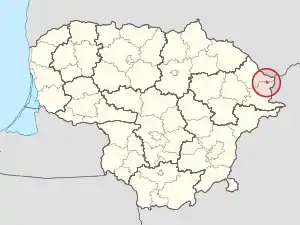 Примечания: Висагинское самоуправление в границах до 2003 года на карте Литвы |