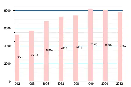 Население коммуны в 2011 году составляло 7780 человек[6], в 2012 году — 7757 человек[7], а в 2013-м — 7757 человек[5].