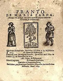 - Pranto de Maria Parda = Плач Марии Мулатки (порт.) / Porque vio as Ruas de Lisboa com taõ poucos ramos das tavernas, & o vinho caro.. — Lisboa: Domingos Carneyro, 1665. — 6 с.