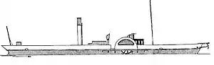 Колёсный пароход водоизмещением 50 тонн. Длина парохода составляла 39,62 метра, ширина — 3,73 метра, осадка — 0,58 метра. На пароходе была установлена паровая машина мощностью 50 номинальных л. с. Вооружение судна состояло из одного 24-фунтового орудия и двух 1-фунтовых пушек на вертлюгах, установленных в носовой и кормовой частях[1].