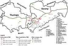 Для рекультивации земель, нарушенных горными работами было создано немецкое государственное предприятие Wismut GmBH[10].