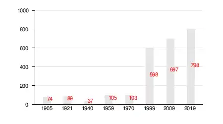 На 1 января 2018 года насчитывалось 776 жителей в 256 домохозяйствах, из них 160 младше трудоспособного возраста, 483 — в трудоспособном возрасте и 133 — старше трудоспособного возраста[8].