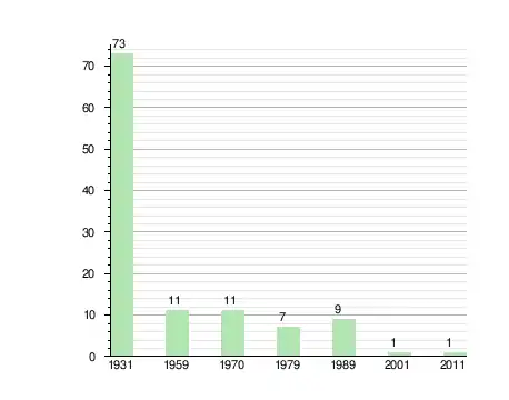 | 1931[3] | 1959пер.[4] | 1970пер.[4] | 1979пер.[5] | 1989пер.[6] | 2001пер.[7] | 2011пер.[8] |