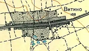 ВИТИНО — деревня барона Корфа, по почтовому тракту, число дворов — 57, число душ — 160 м. п.[11] (1856 год)