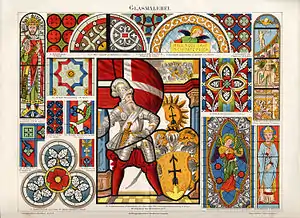 В эпоху Северного Возрождения XVI века в окнах рыцарских замков появлялись расписные витражи с геральдикой владельцев. Получили распространение кабинетные витражи (нем. Kabinett Glasmalerei, в том числе с использованием «лунного стекла» (нем. Glasscheiben). Круглые «лунулы» в свинцовых оправах составляли фон, в центре которого помещали расписные клейма с портретами или гербами владельцев замка[7]>[8]. Расписные ренессансные витражи воспроизводили композиции популярных гравюр А. Дюрера, М. Раймонди и других художников. Специальные рисунки кабинетных витражей делали немецкие кляйнмайстеры: Г. Альдегревер, Й. Амман, Й. Зильбер, В. Солис, П. Флётнер, а также Х. К. Ланг Старший, Т. Штиммер. В эпоху маньеризма и барокко витражи были вытеснены иллюзорными росписями и скульптурой. Мастера-витрарии пытались подражать живописцам, но в результате уже к концу XVI века витражное искусство потеряло свою оригинальность и в непосильной борьбе с живописью стало выглядеть архаичным.