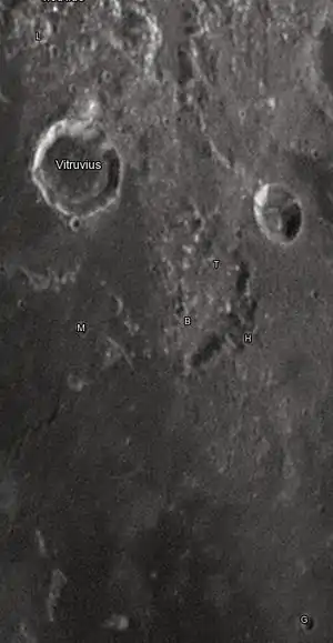 - Сателлитный кратер Витрувий B был назван кратером Фишер[5], но Международный астрономический союз не утвердил это название.