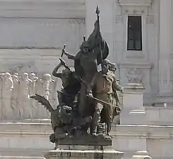- Пьемонт, в состав которого входила и Валле д’Аоста. Статуя с мечом и в шлеме, увенчанном орлом, символизирующая участие области в войнах за независимость и в Рисорджименто. Скульптор — Пьер Энрико Асторри.