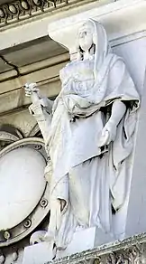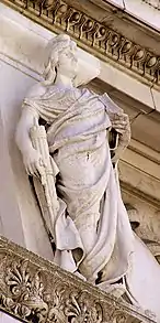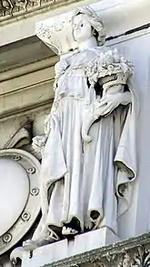 Статуи на фризе над колоннами символизируют шестнадцать итальянских областей того времени. Создание каждой статуи, как правило, поручалось скульптору — уроженцу соответствующей области. Слева направо:
